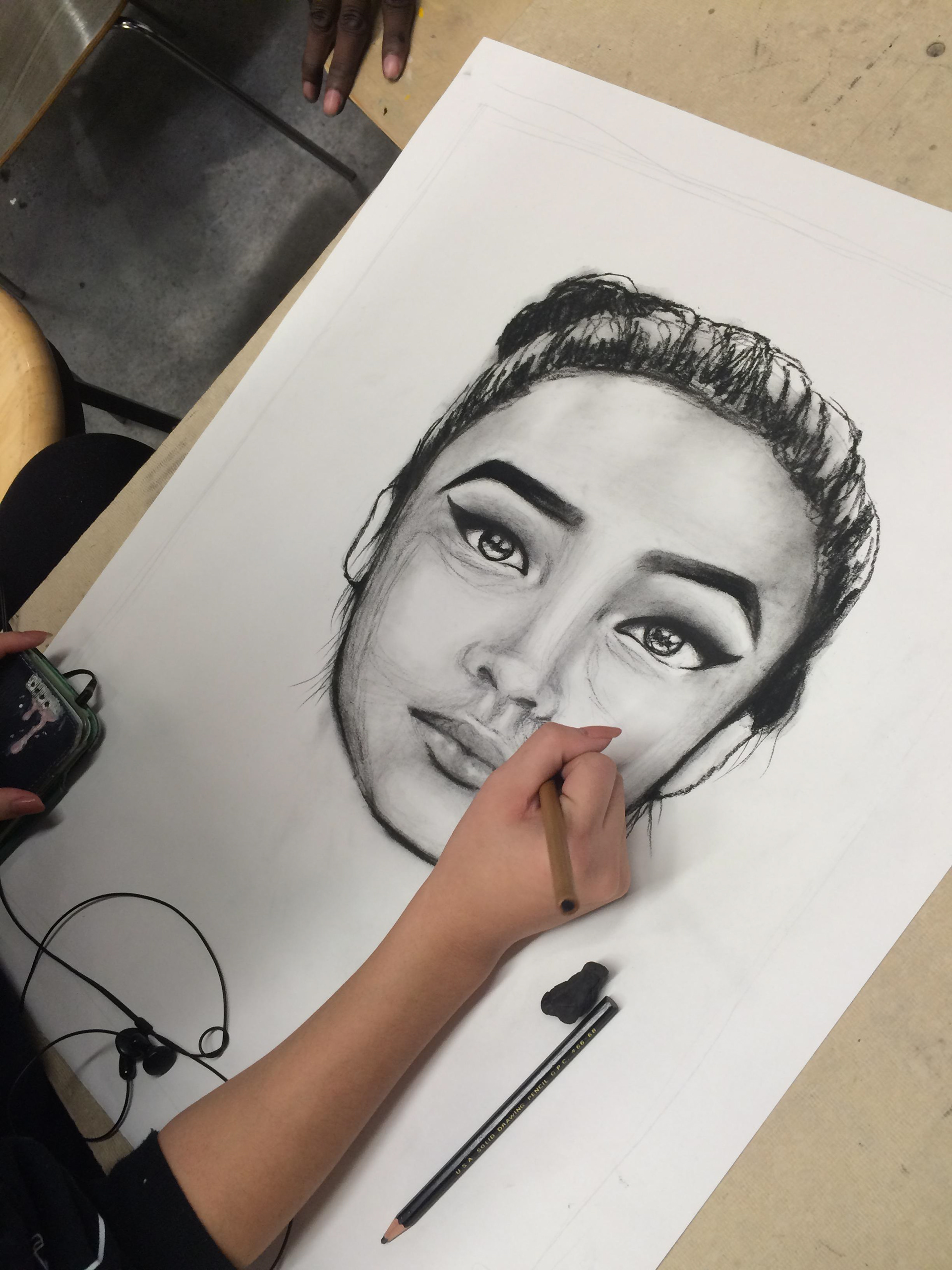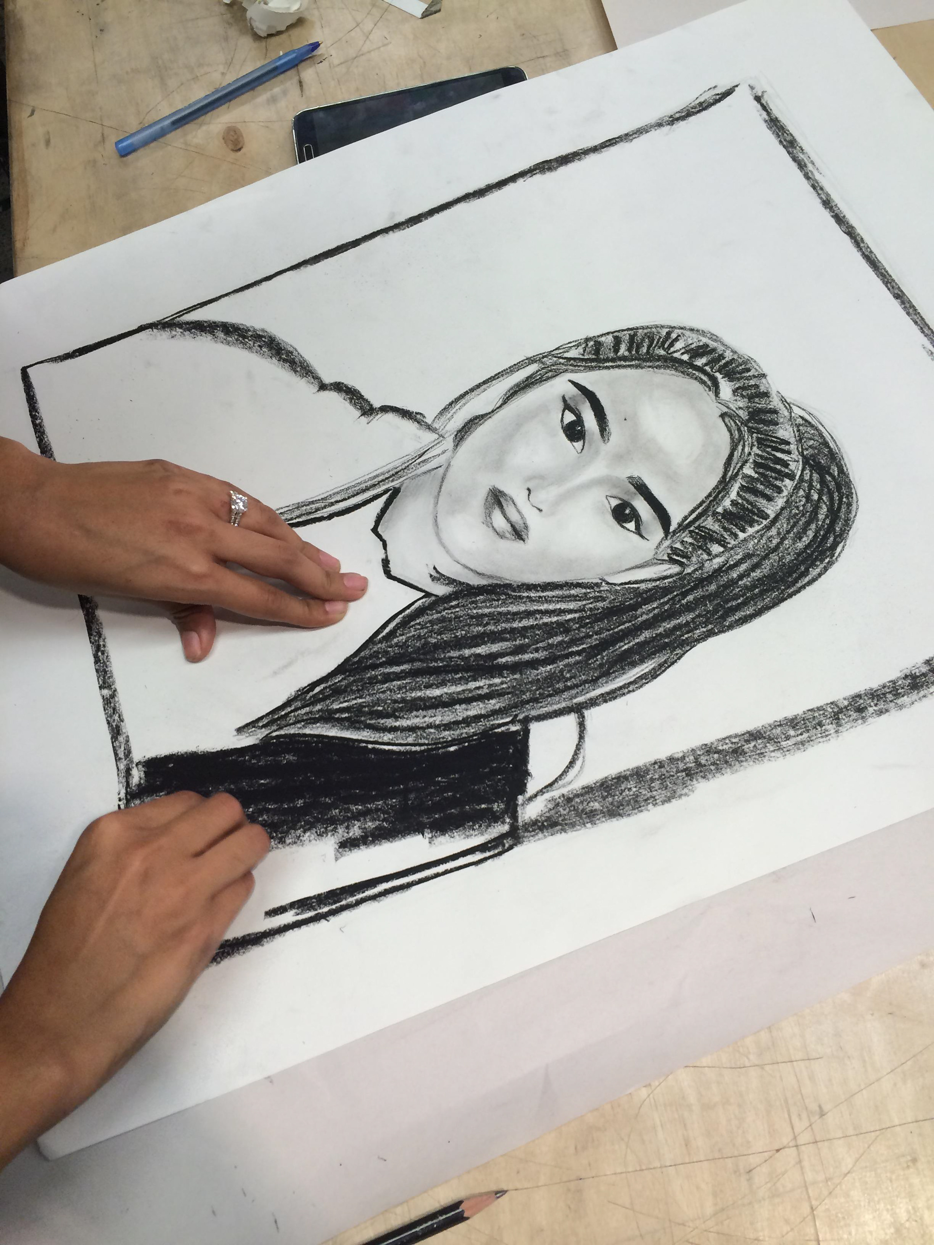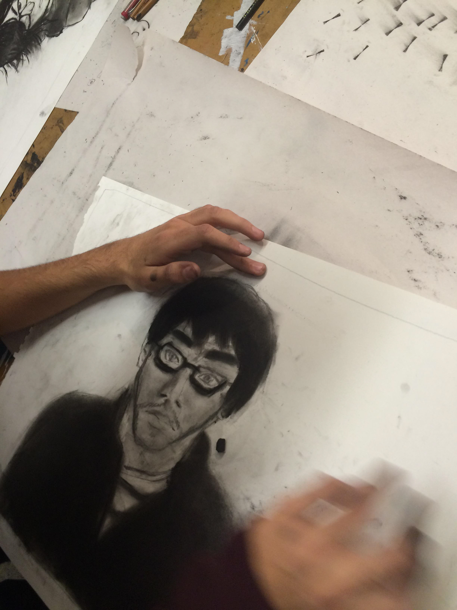 Excerpt from Sound Art Class Collaborative Video, 2018, Charcoal Self Portraits, Drawing Class, 2016
